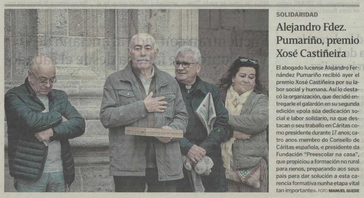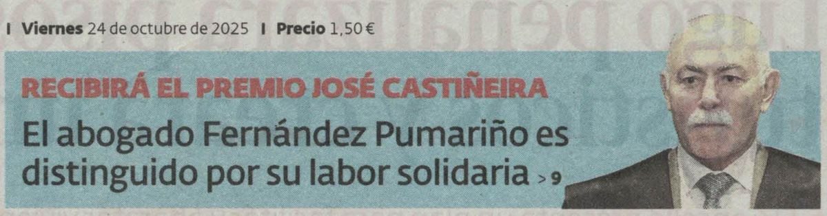 Alejandro Fdez. Pumariño, premio Xosé Castiñeira (La Voz de Galicia, 27/10/2025)