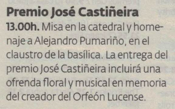Axenda: Premio José Castiñeira (El Progreso, 26/10/2025)