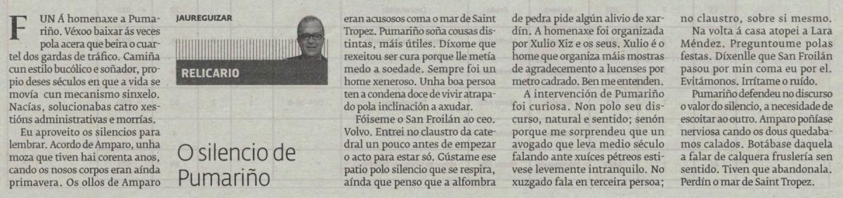 O silencio de Pumariño, por Jaureguizar (El Progreso, 27/10/2025)